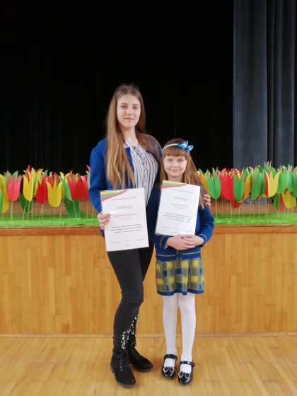 2a klasės mokinė Akvilė Beniulytė (mokytoja Ilona Jesevičienė) deklamavo Jono Aisčio eilėraštį ,,Tu esi“, o 8a klasės mokinė Rugilė Kunickaitė (mokytoja Rasa Boreikienė) pasirinko Just. Marcinkevičiaus eilėraštį ,,Kad giedočiau tave”.