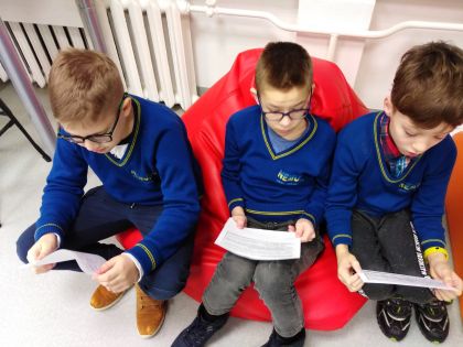Sausio 25 d. mokyklos bibliotekoje trečiokams vyko lietuvių kalbos pamoka, skirta vaikų rašytojo Otfrydo Proislerio kūrybai. Bibliotekininkė mokiniams pristatė svarbiausius šio vokiečių rašytojo gyvenimo faktus bei populiariausius kūrinius.