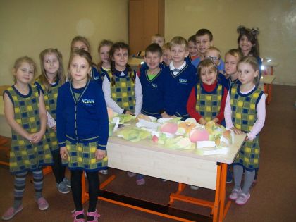Mokiniai susipažino su rudens derliumi. Karpė, spalvino, klijavo įvairias rudens derliaus aplikacijas. Pristatė, apibūdino savo pagamintą daržovę.