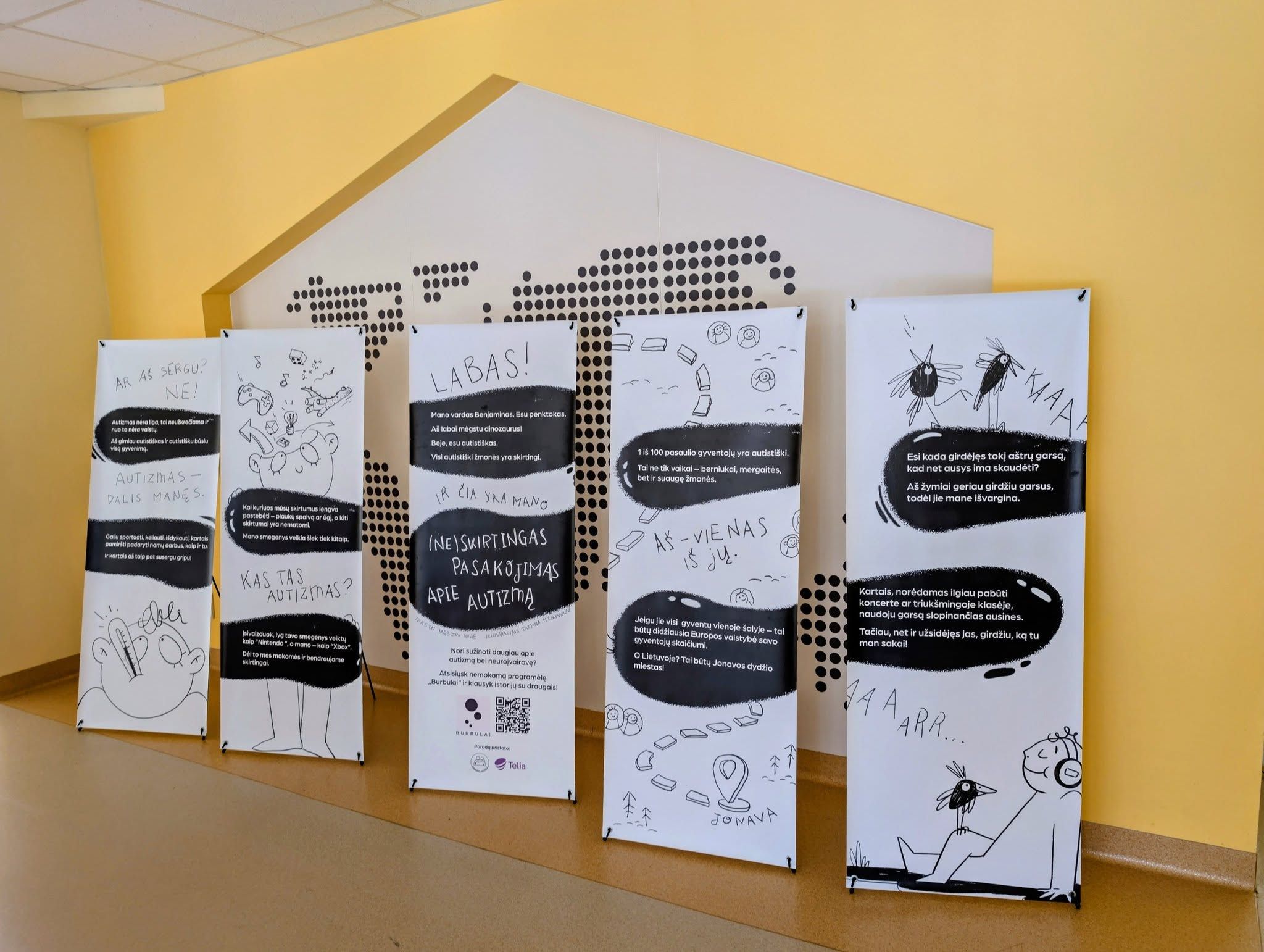 Mūsų mokyklos fojė – paroda, kuri pasakoja apie kasdienybę kitokiais pojūčiais. Ji primena, kad garsas, mums atrodantis vos juntamas, kitam gali būti beveik nepakenčiamas. Kad žodis, mums paprastas, kitam gali būti sunkiai iššifruojamas.