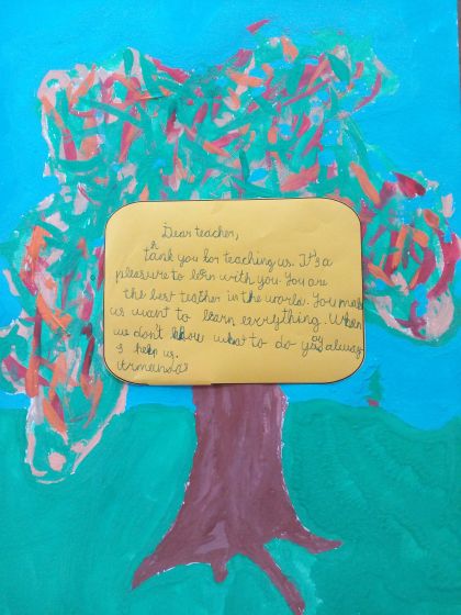 Integruotos interaktyvios anglų k. ir lietuvių k. pamokos metu 3 klasės mokiniai mokėsi rašyti padėkos žinutę ir ją dekoruoti. Atrinkti darbai dalyvavo 3 klasės mokinių rašymo anglų kalba ir piešimo respublikiniame konkurse „Laiškas Mokytojui 2018“.