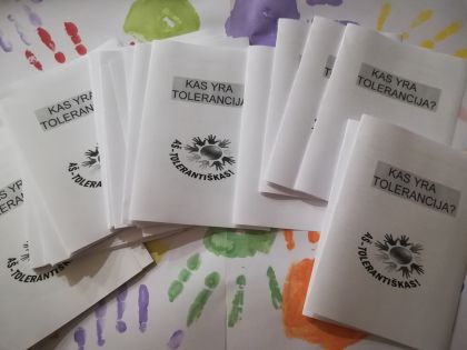 Vaikų surinkti pastebėjimai ir mintys buvo sudėti į lankstinuką. Lankstinukas pertraukų metu "keliavo" iš rankų į rankas. Vaikai dalinosi patirtimis apie toleranciją jų kasdienybėje su psichologe Dovile bei socialinė pedagoge Rūta.