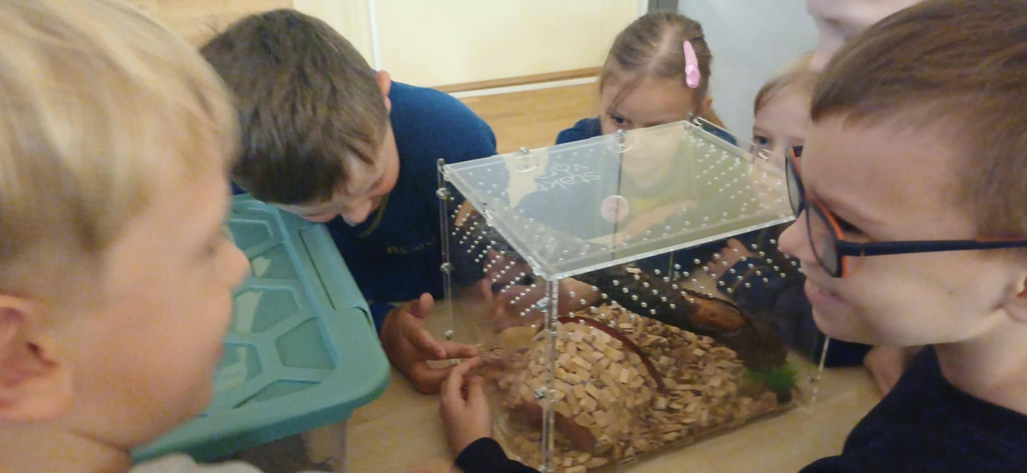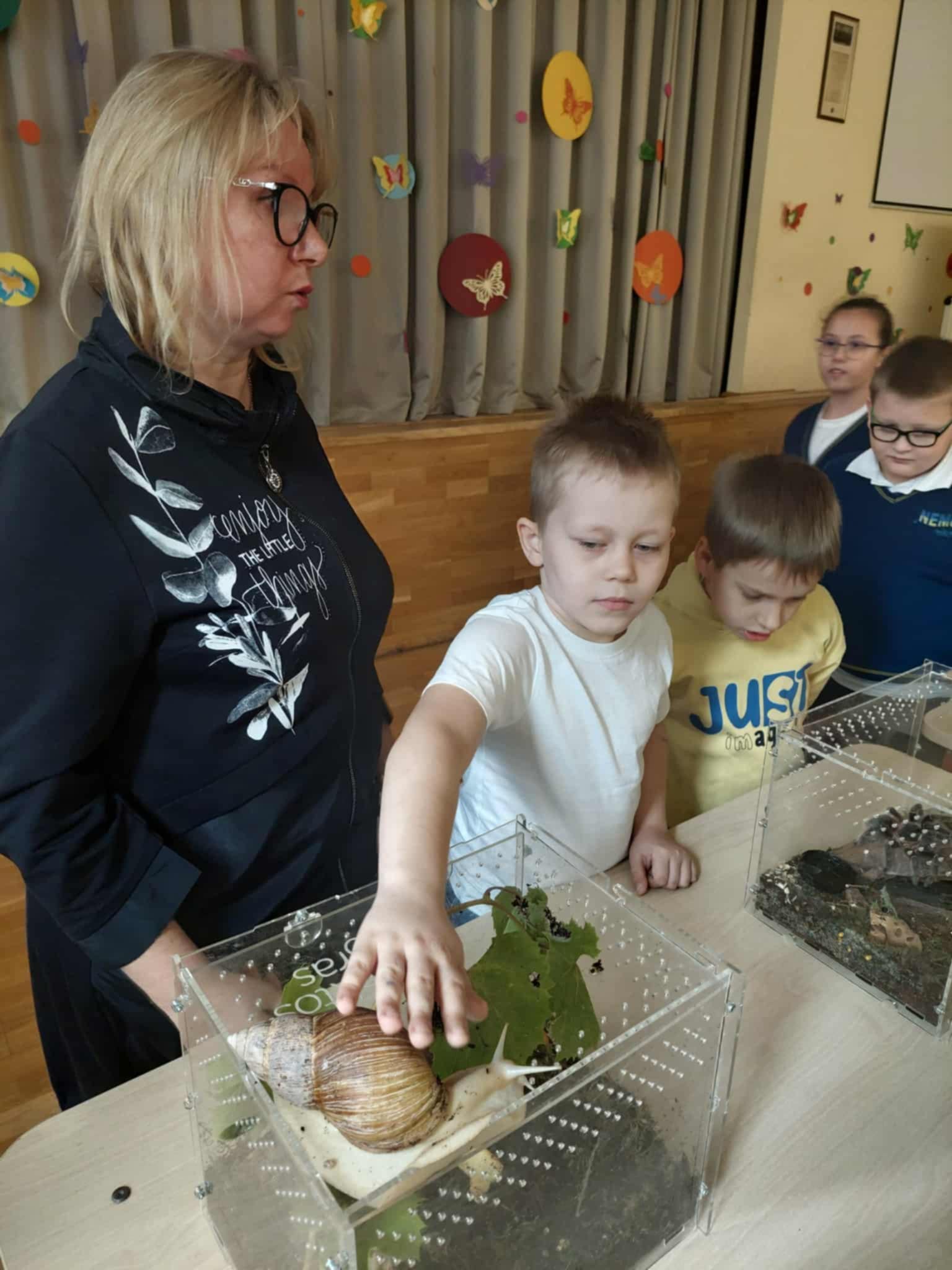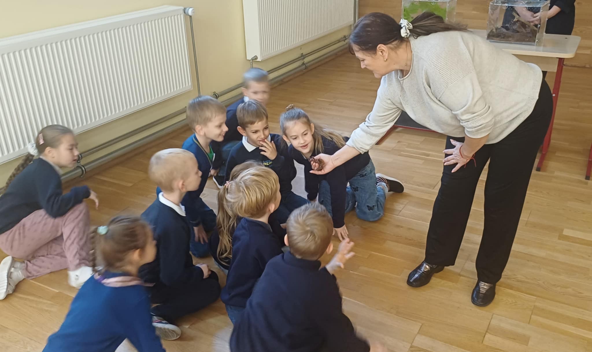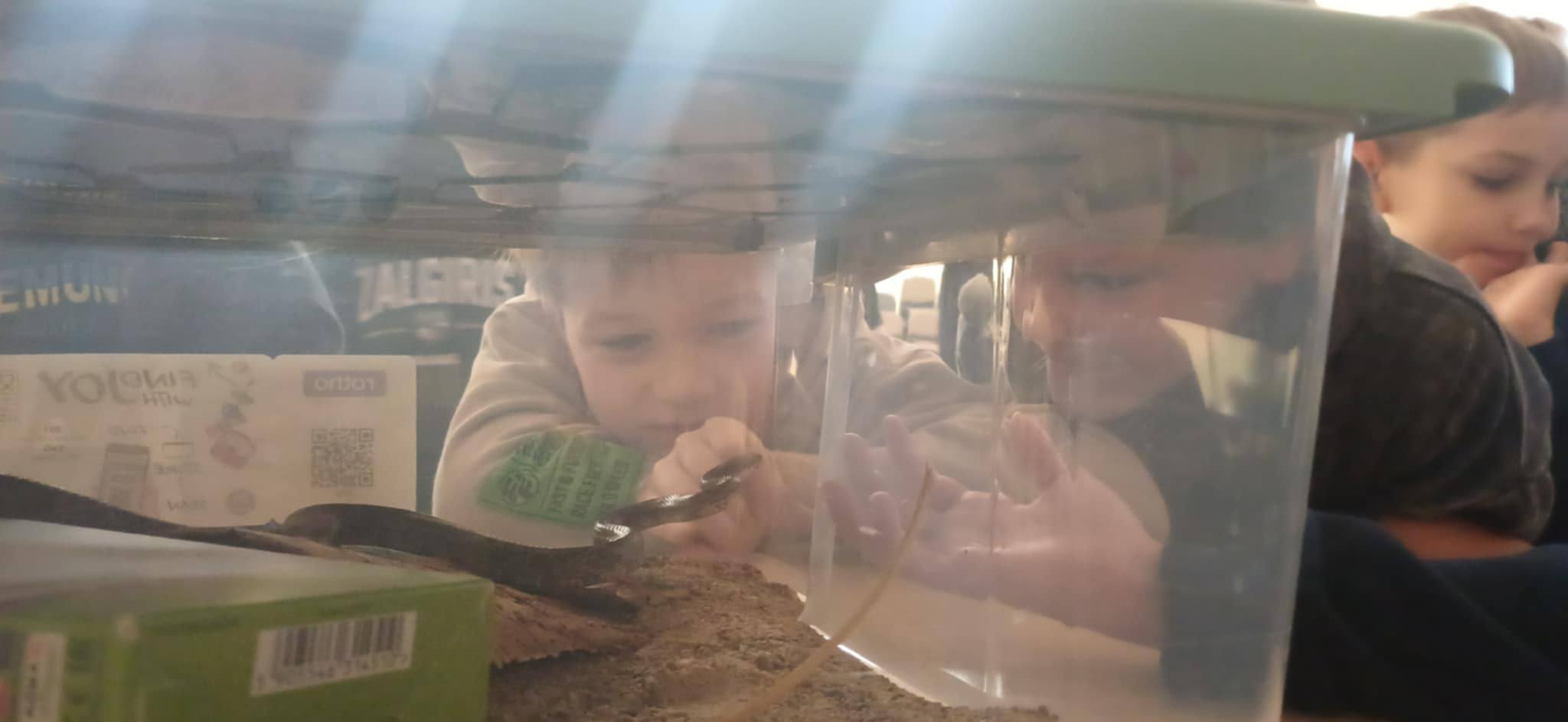 Gatamokslines įžvalgas į moliuskų, vabzdžių, nariuotakojų, varliagyvių, roplių pasaulį pirmų, antrų ir trečių klasių mokiniai gvildeno edukacijoje ,,Po stiklu".