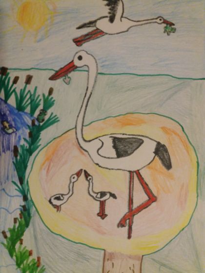 Šiais metais antrokai vėl piešia gandrus. Jiems patinka piešti ir skaityti.