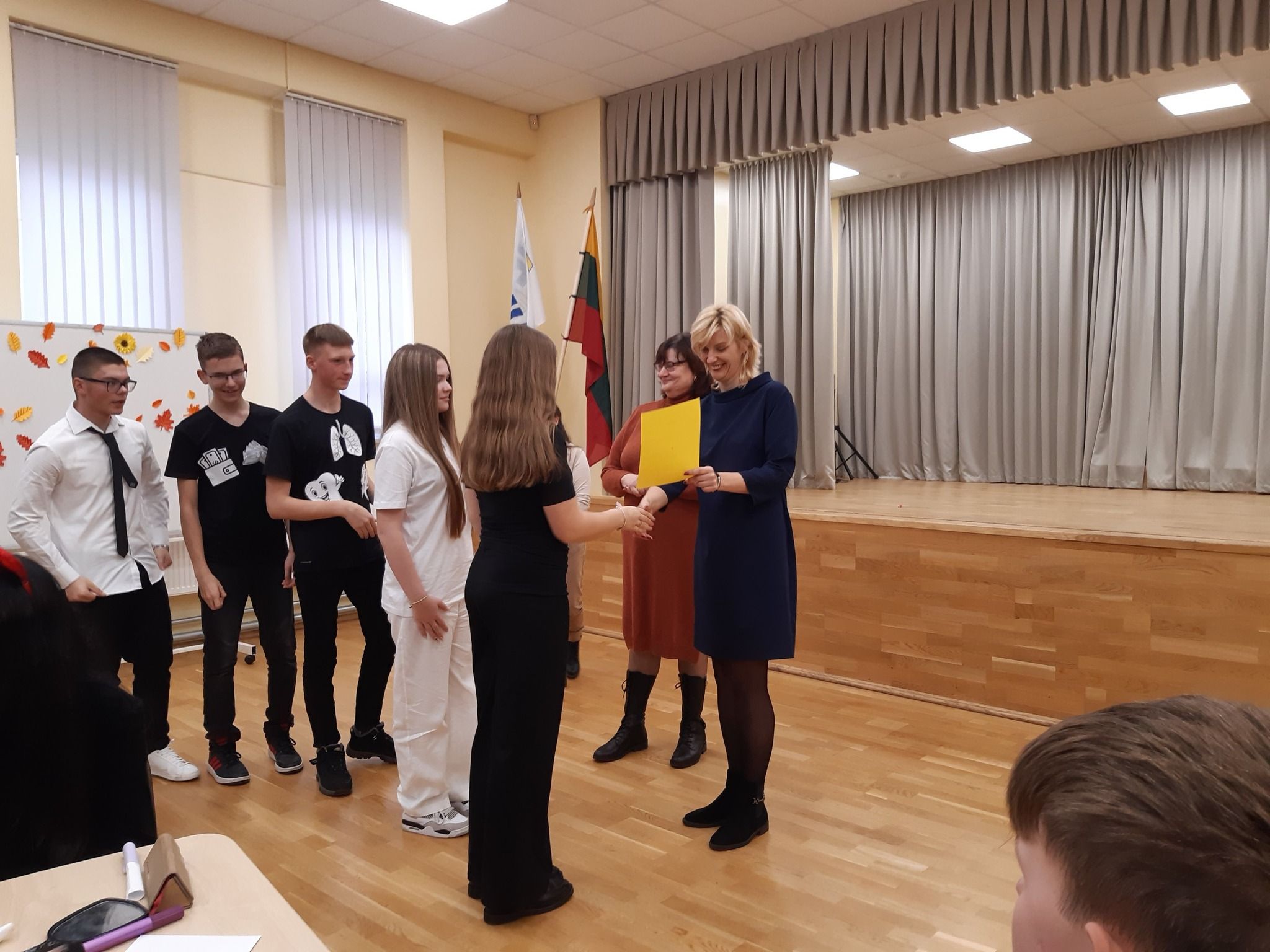 kūrybines užduotis – vaidybinį prisistatymą bei šūkio kūrimą panaudojant duotus įvairius žodžius;