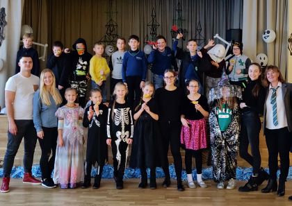 Mokiniai noriai atliko Helovino tematikos užduotis, mokėsi šventinio šokio žingsnelių, skanavo šventinių vaišių.