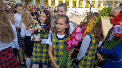Pailsėję, paūgėję ir sutvirtėję, mūsų mokiniai susirinko paminėti „Mokslo ir žinių" dieną. Juos ir jų tėvelius pasitiko bei pasveikino mokyklos direktorė Vesta Žiūraitienė. Linkėdama visiems sėkmės, ji pasidžiaugė padidėjusiu mokinių skaičiumi, naujais mokytojų kolektyvo nariais ir per vasarą atliktais mokyklos patalpų atnaujinimo darbais.