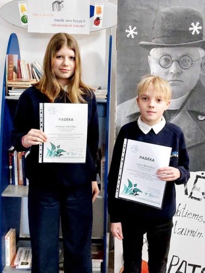 Mūsų mokyklą atstovavo 4 kl. mokinys Lukas Beniušis ir 6 kl. mokinė Amelija Dikčiūtė. Džiaugiamės mokinių kūrybiškumu ir viešojo kalbėjimo baimės nugalėjimu pristatant prozos kūrinius žiemos tema.