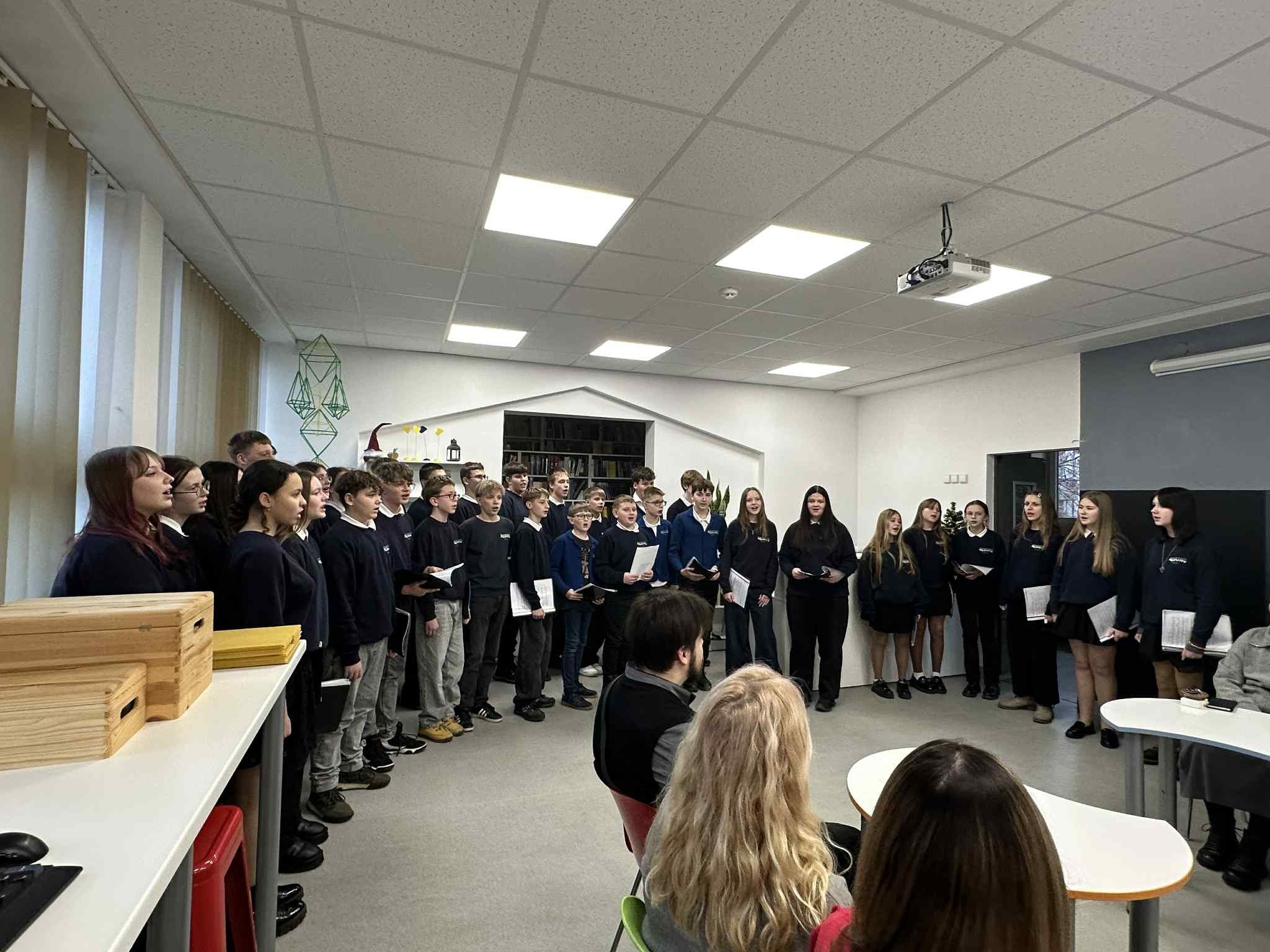 2025-12-09 mūsų mokykloje skambėjo adventinė ramybė – vyko šventinė popietė, subūrusi mokytojus į bendro susikaupimo ir šviesos ratą.