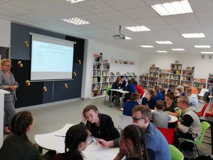 Vyresnių klasių mokiniai dalyvavo kalbų viktorinoje, sprendė anglų ir rusų kalbos kryžiažodžius, iliustravo frazeologizmus.