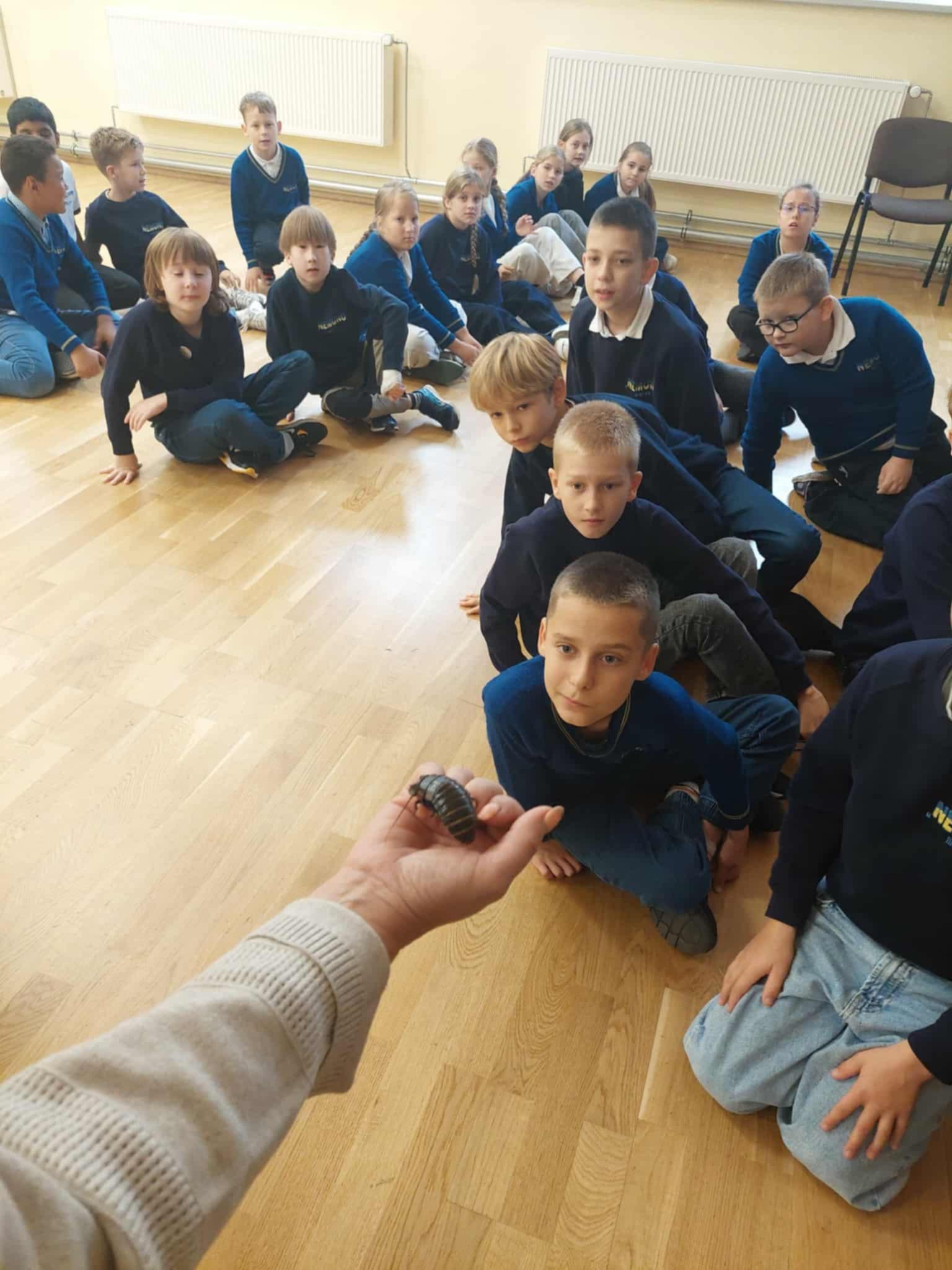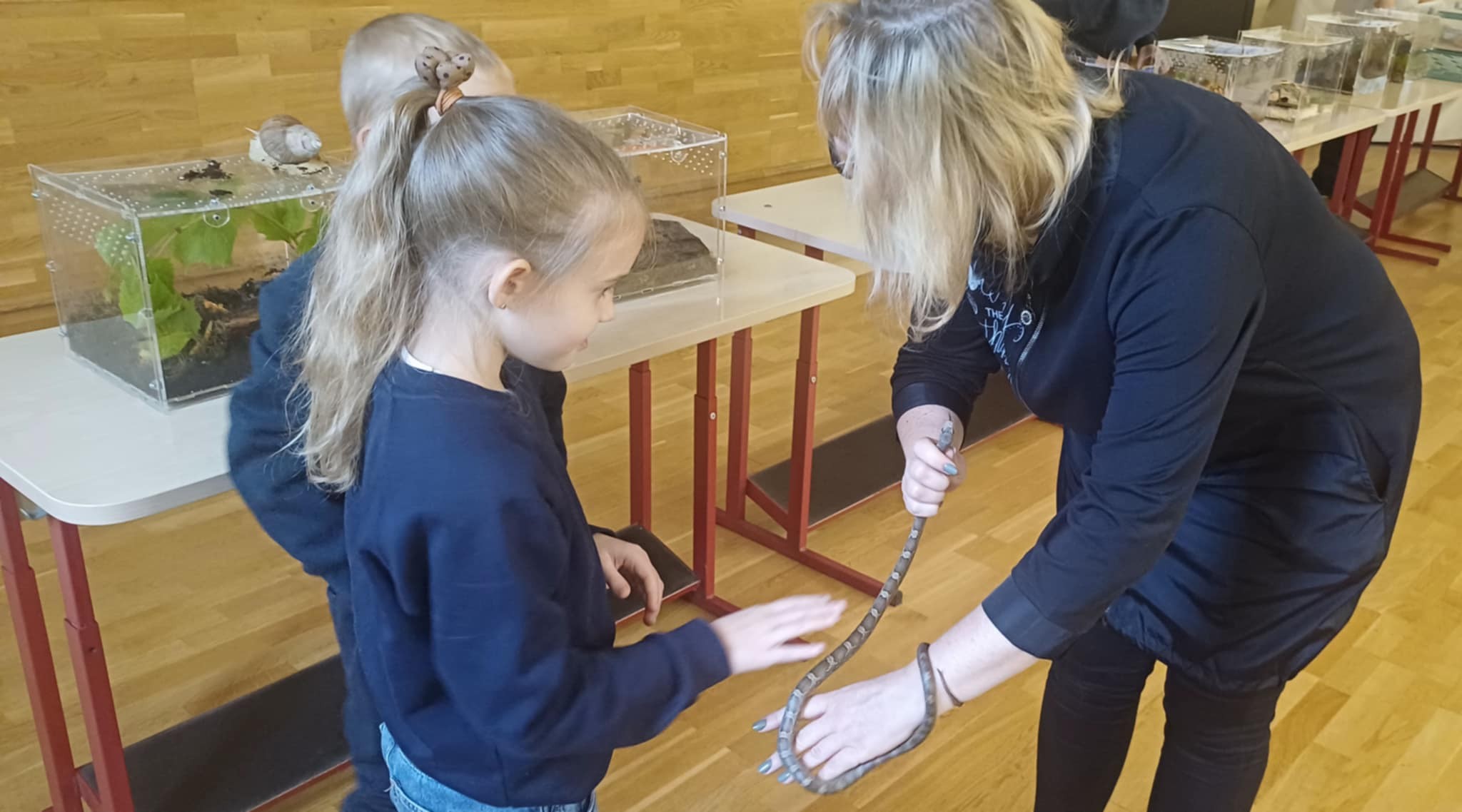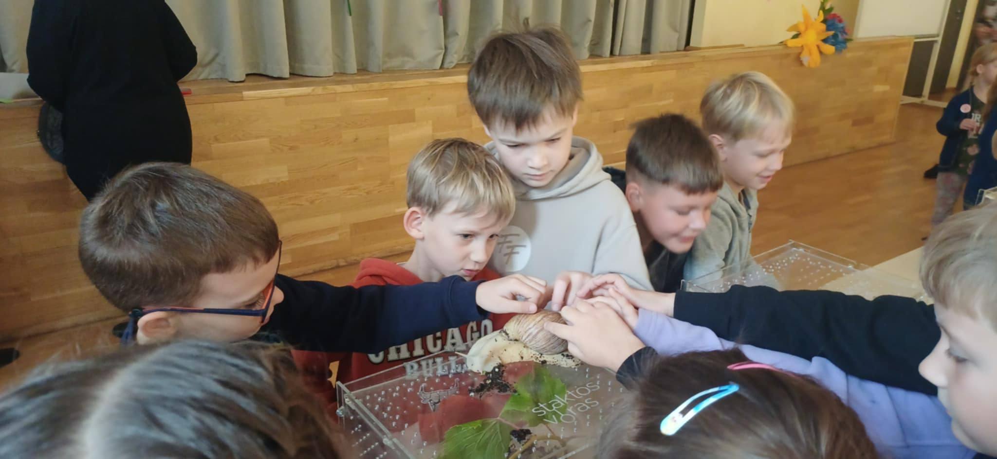 Gatamokslines įžvalgas į moliuskų, vabzdžių, nariuotakojų, varliagyvių, roplių pasaulį pirmų, antrų ir trečių klasių mokiniai gvildeno edukacijoje ,,Po stiklu".