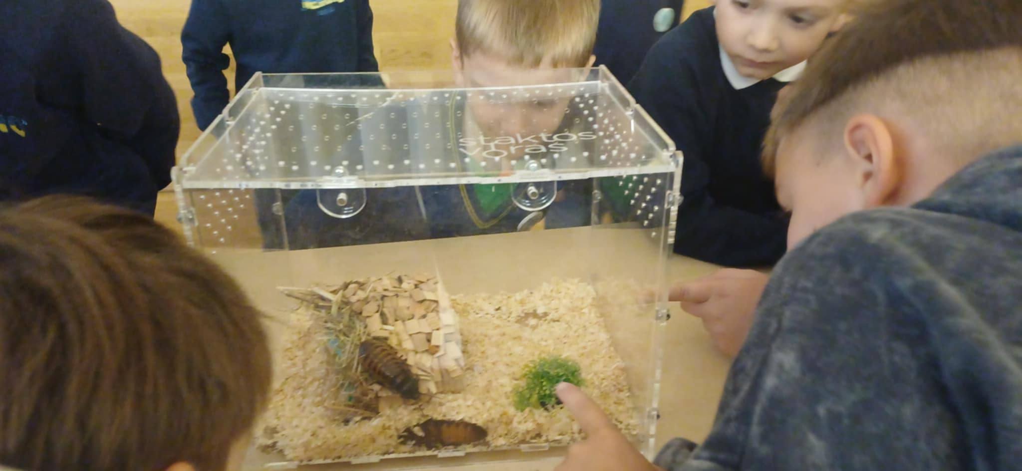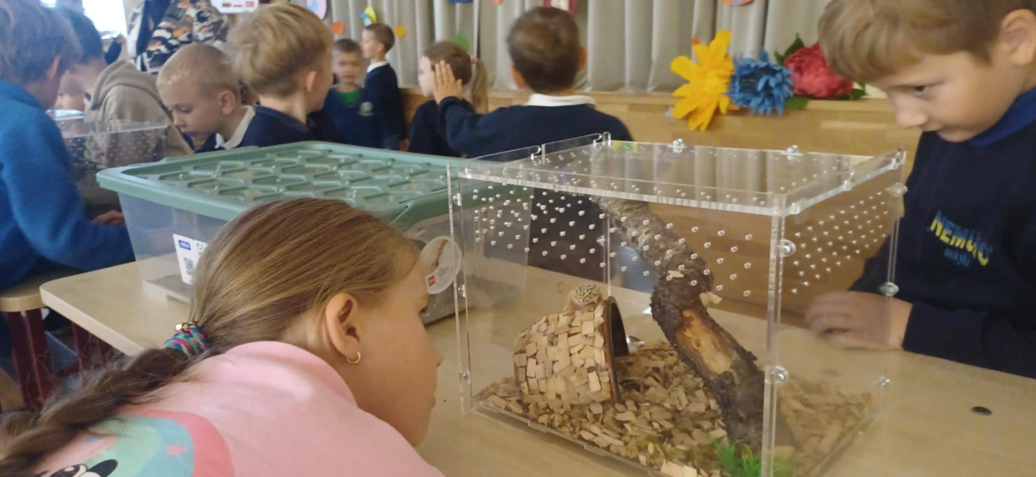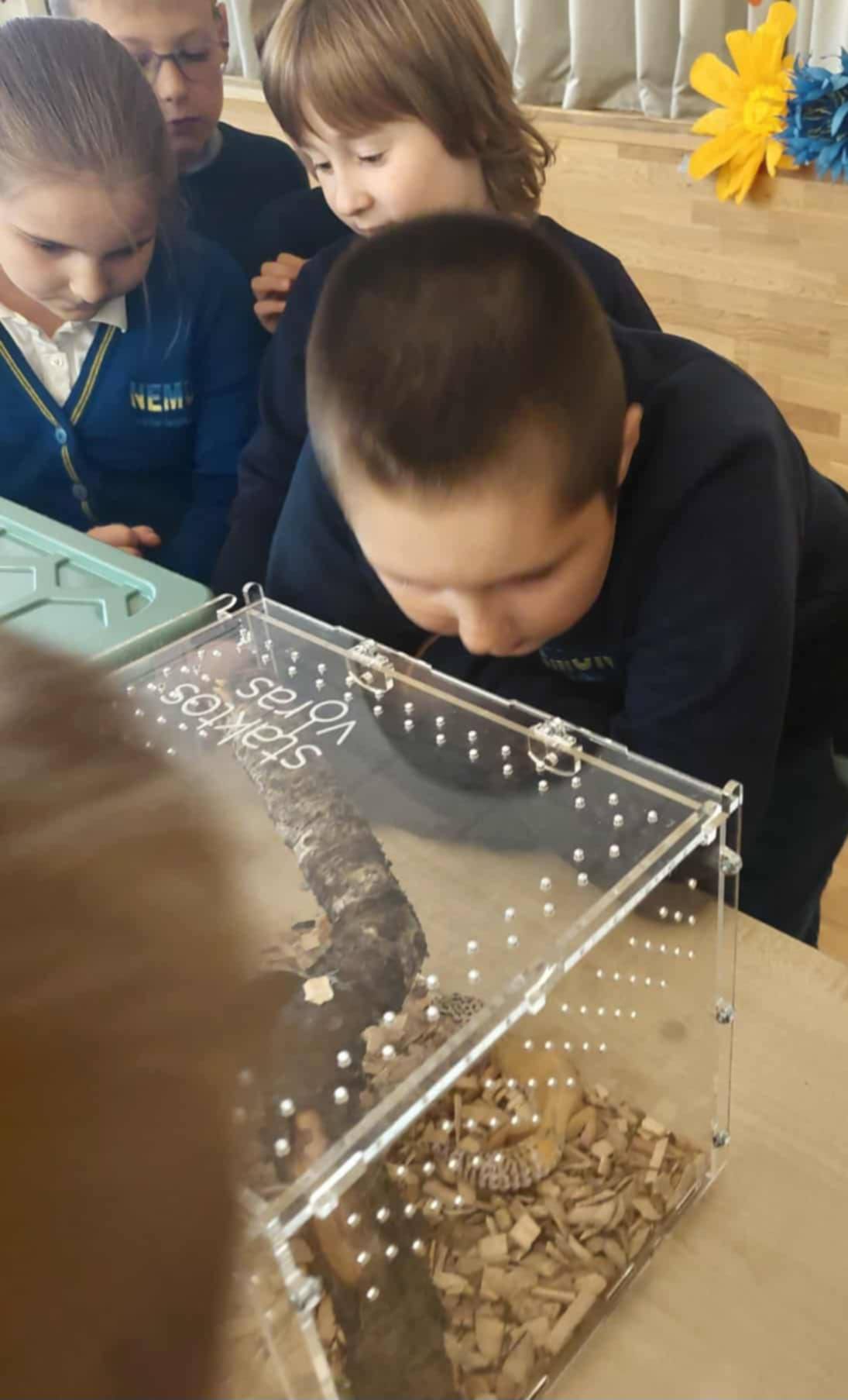 Gatamokslines įžvalgas į moliuskų, vabzdžių, nariuotakojų, varliagyvių, roplių pasaulį pirmų, antrų ir trečių klasių mokiniai gvildeno edukacijoje ,,Po stiklu".