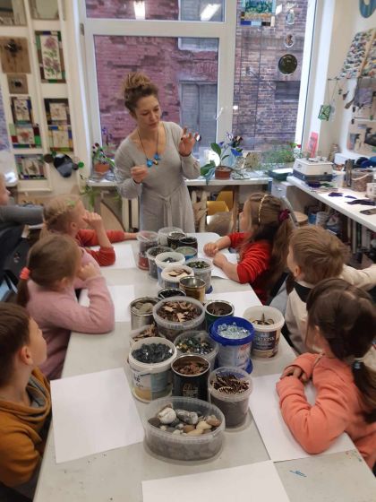 "Pelėdžiukų"studijos vaikai lankėsi stiklo galerijoje.Meninkė papasakojo apie stiklo apdirbimo būdus, apžiūrėjome meninkės kurtus stiklo dirbinius.