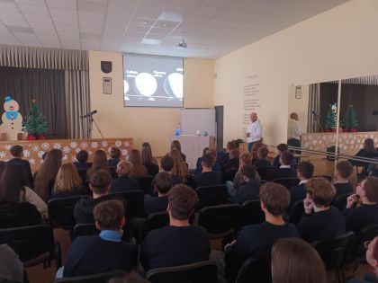 pažinti paslaptingąją Visatą. 2025 m. gruodžio 12 d. mokiniai dalyvavo edukacinėje veikloje „Krentanti žvaigždė. Visata, kosmosas ir aš“. Edukaciją vedė „Garsios Tylos Observatorija“ įkūrėjas astrofotografas ir astronomijos mokslo populiarintojas Simas Šatkauskas. Astronomassupažindino mokinius su beveik neišmatuojamos platybės Kosmoso bei Visatos erdvėmis. Papasakojo apie Saulės sistemos susiformavimą, galaktikų įvairovę ir žvaigždžių gimimą.